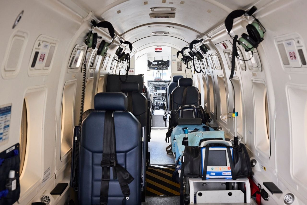In addition, the aircraft offers ample space for bulky emergency stretchers and other equipment. “We can transport basically anything up to full advanced life systems,” Flynn said. “The cargo door on the back of the aircraft makes for easy loading and unloading. We can even put wheelchairs on board as needed.”