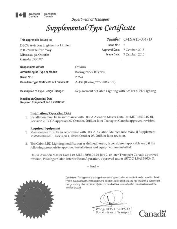 Replacement of Cabin Lighting